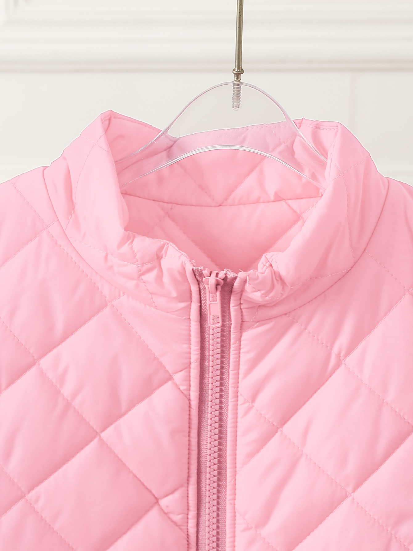 Women's Sleeveless Vest with Zipper Closure - Vibrant Pink Winter Warmth, Stand Collar & Pocket Design, Casual Elegant Solid Color Non-Stretch Fabric for Fall Winter Outdoor Beach Outings, Machine Washable Layering Piece (No Belt, Standard Length)