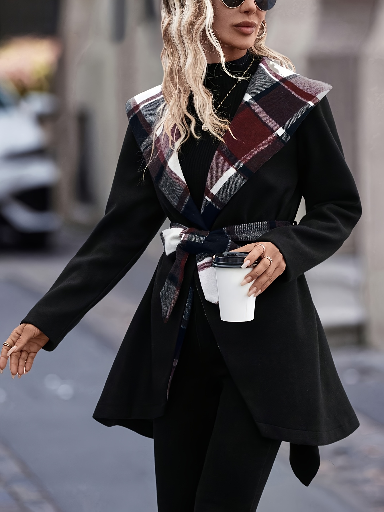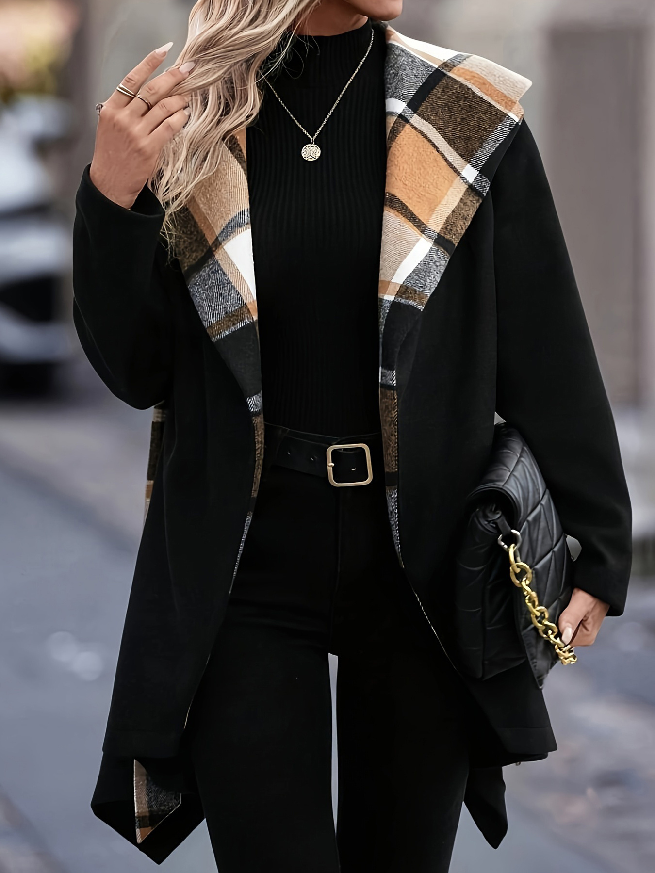 Women'S Elegant Mid-Length Winter Coat with High Neck and Plaid Patchwork Design - Warm, Lightweight, and Stylish for Office or Holiday Season, Warm Weather Jacket | Plaid Pattern Coat | Structured Coat