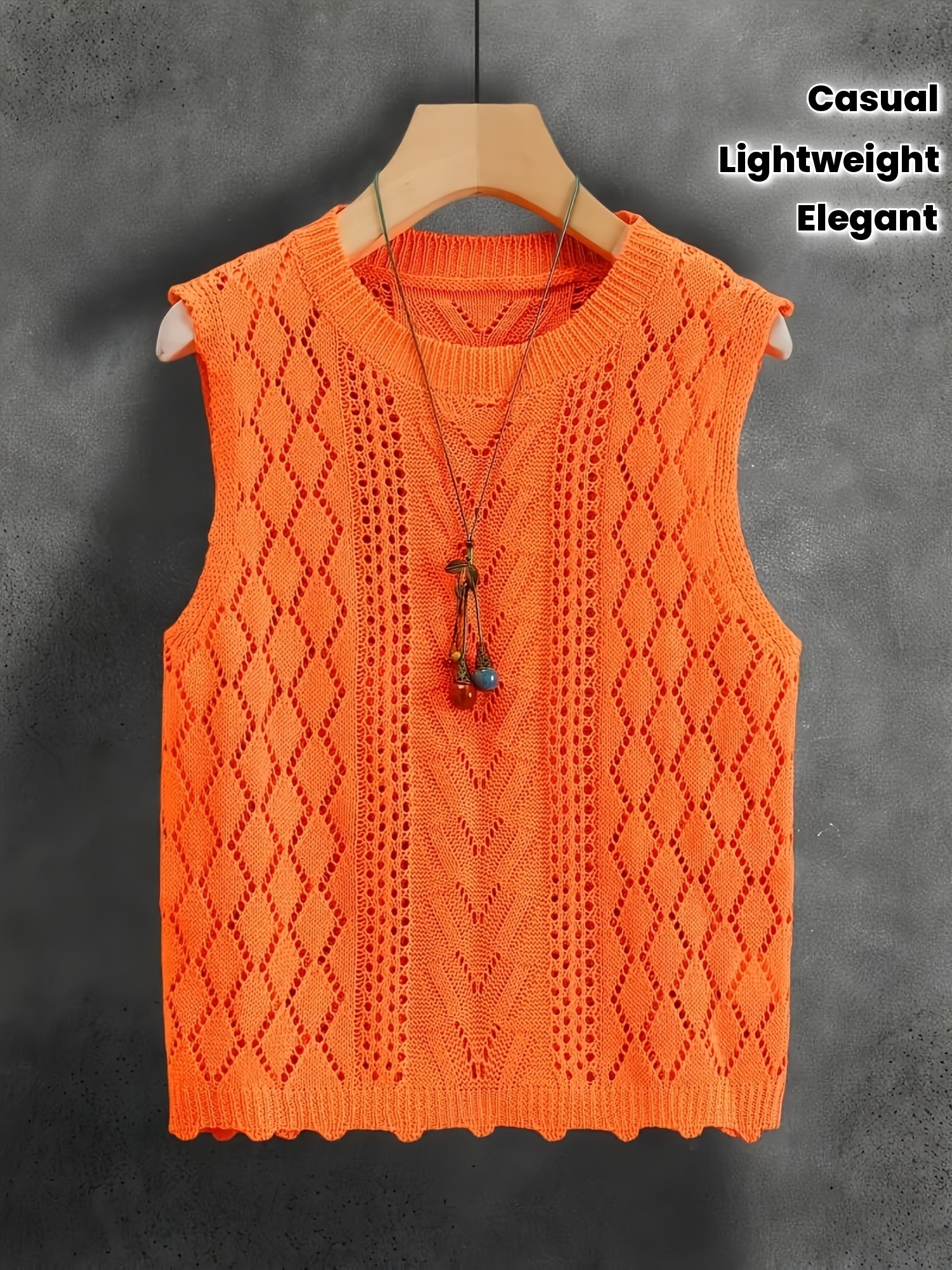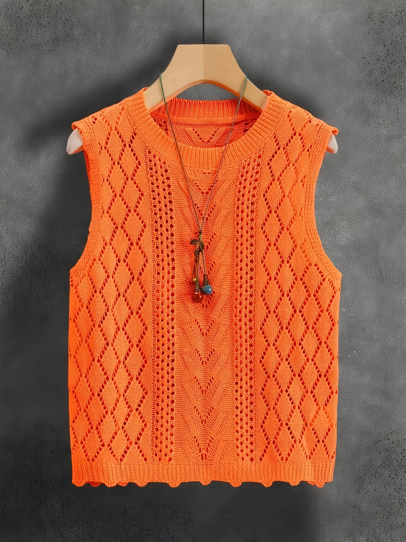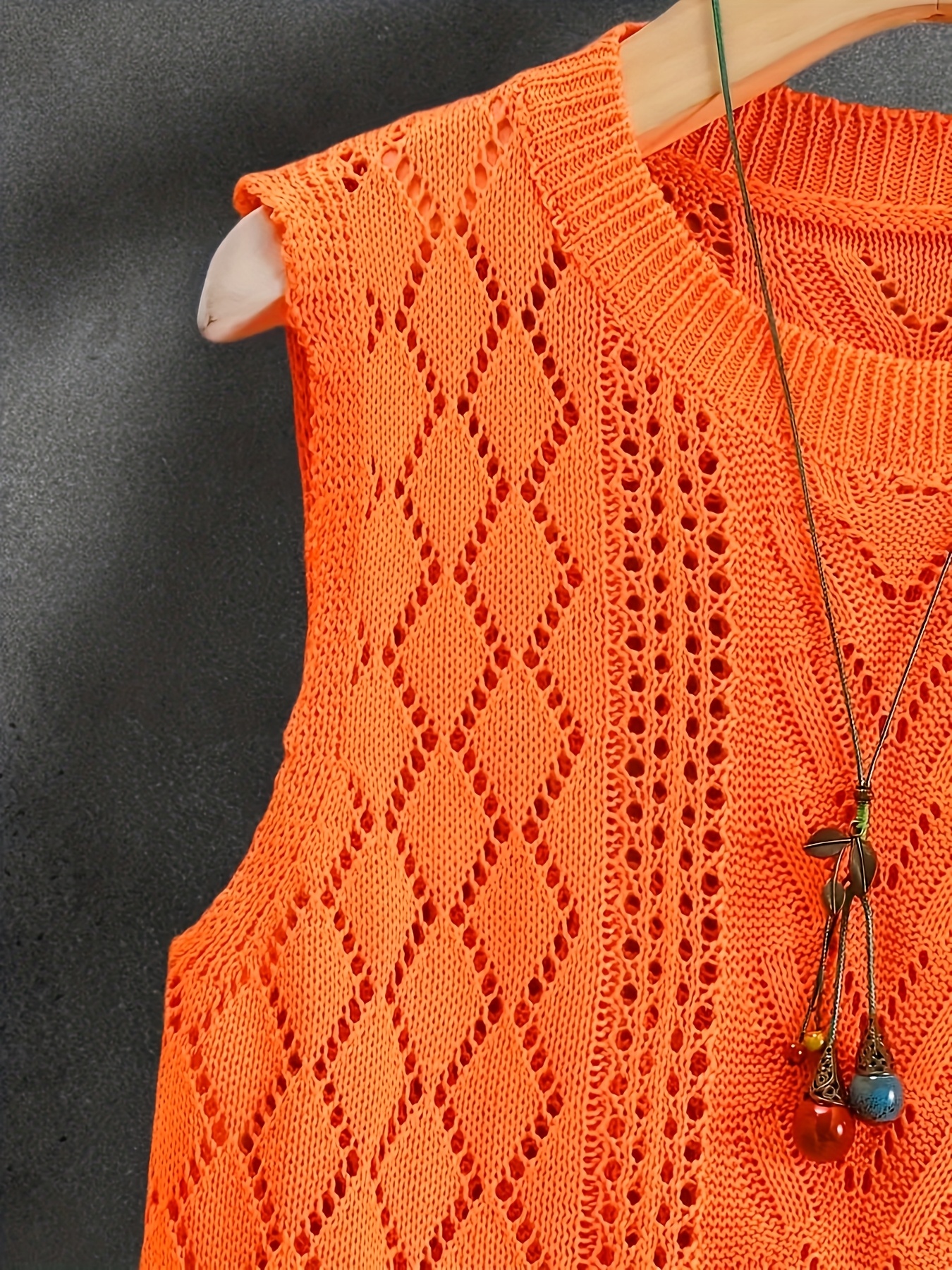 Women's Sleeveless Geometric Cut-Out Vest - Bright Orange Elegant Casual H-Line Regular Fit, All-Season Versatile Layering Piece for Casual Attire, Openwork Pattern, Lightweight Fashion, Summer Wardrobe, Delicate Detailing, Stylish Women